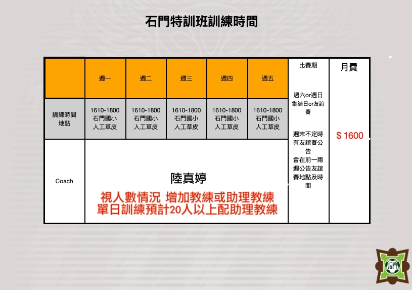 訓練地點:石門國小人工草地球場