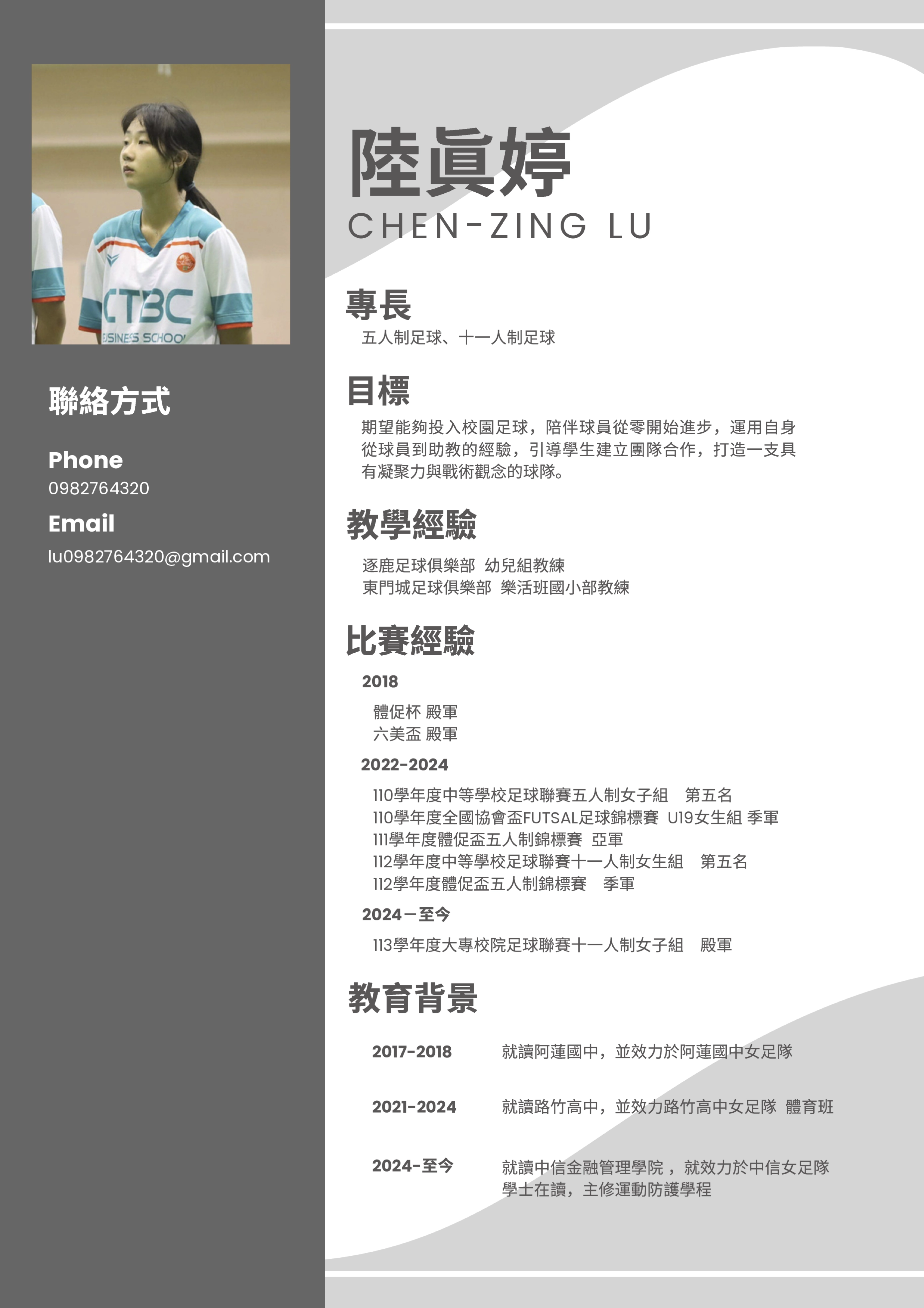 聯絡方式:0982764320 (陸真婷教練)