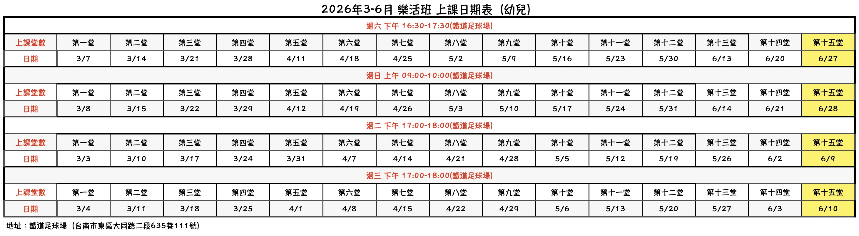 - 週六下午(週末班)16:30–17:30📍 上課地點:台南東區 鐵道足球場