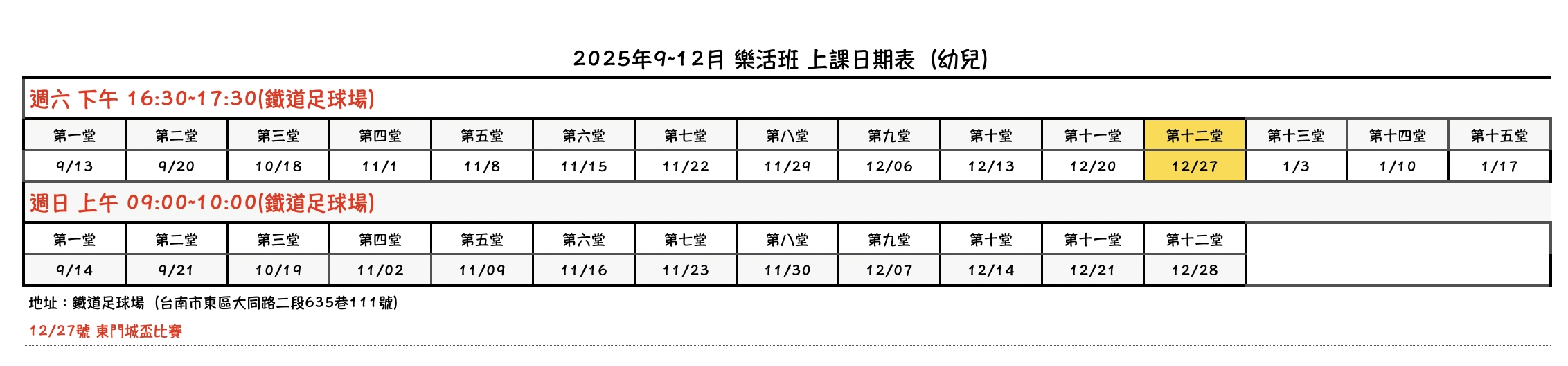 備註:1.含「東門城盃」課程1堂(日期另行公告 ) 2.9/6號開放8堂報名,滿編後不另開班 | ||