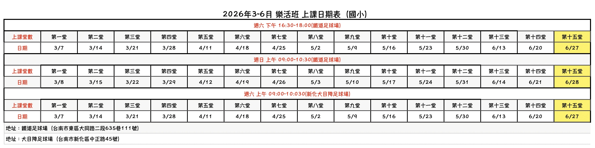 - 週六下午(週末班)16:30–18:00 📍 台南東區鐵道足球場
