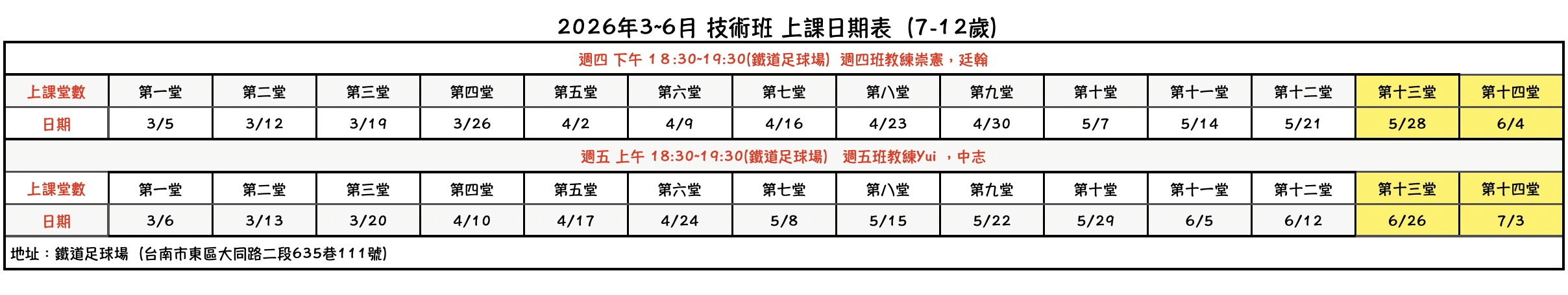 🗓️ 課程時間與實際上課日期(2026 年 3–6 月)